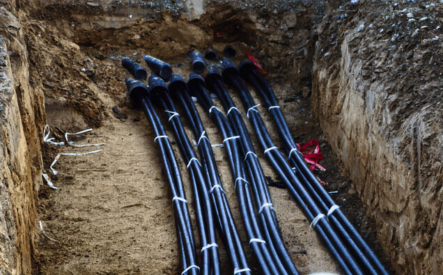 Expert installation of mains cabling from network pillar to metre box with correct segregation, depth, and protection as required by distributor regulations.